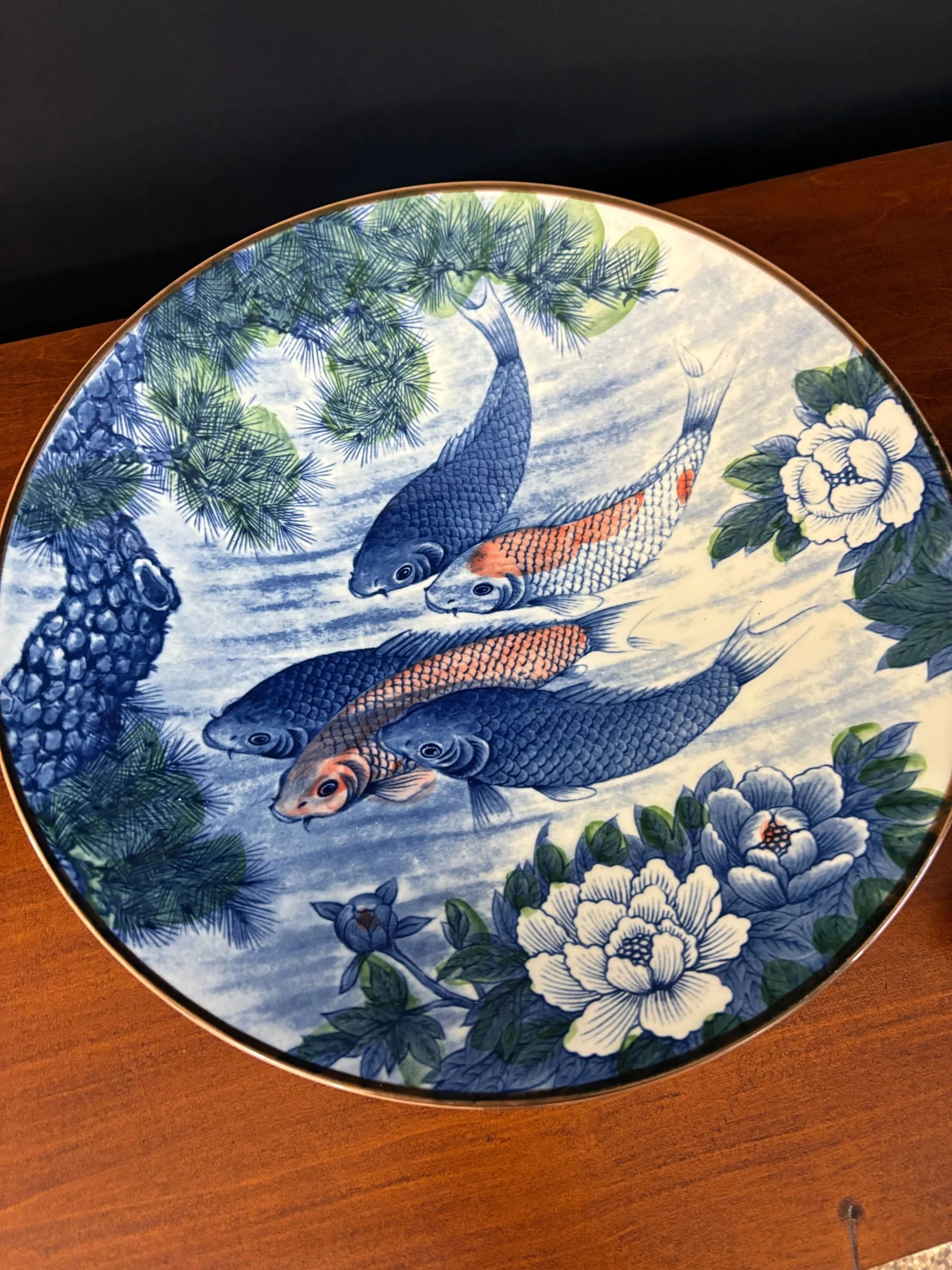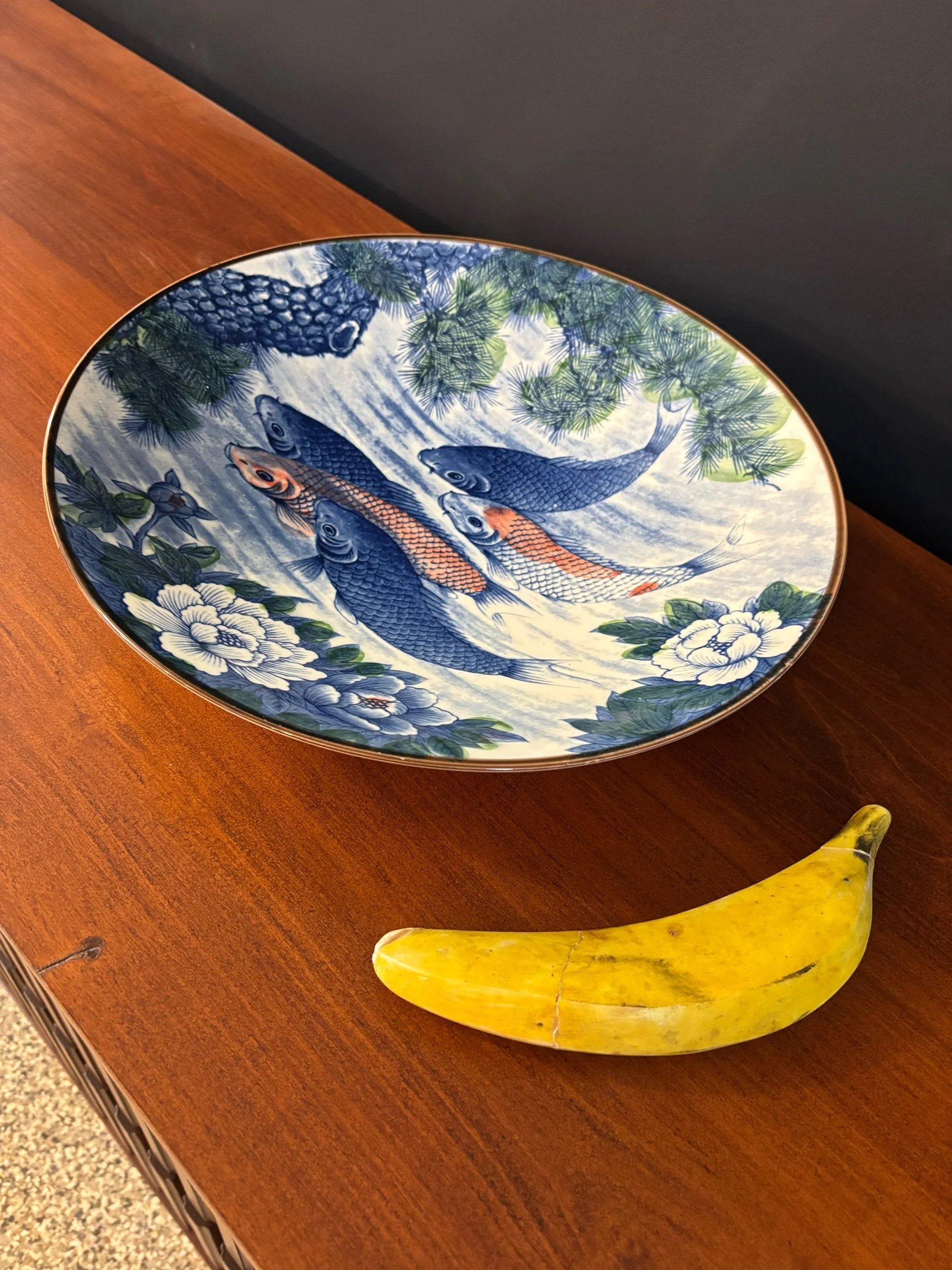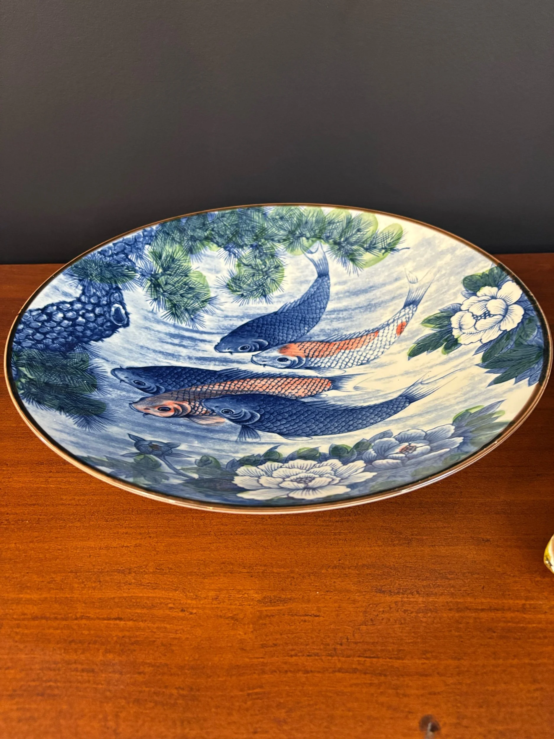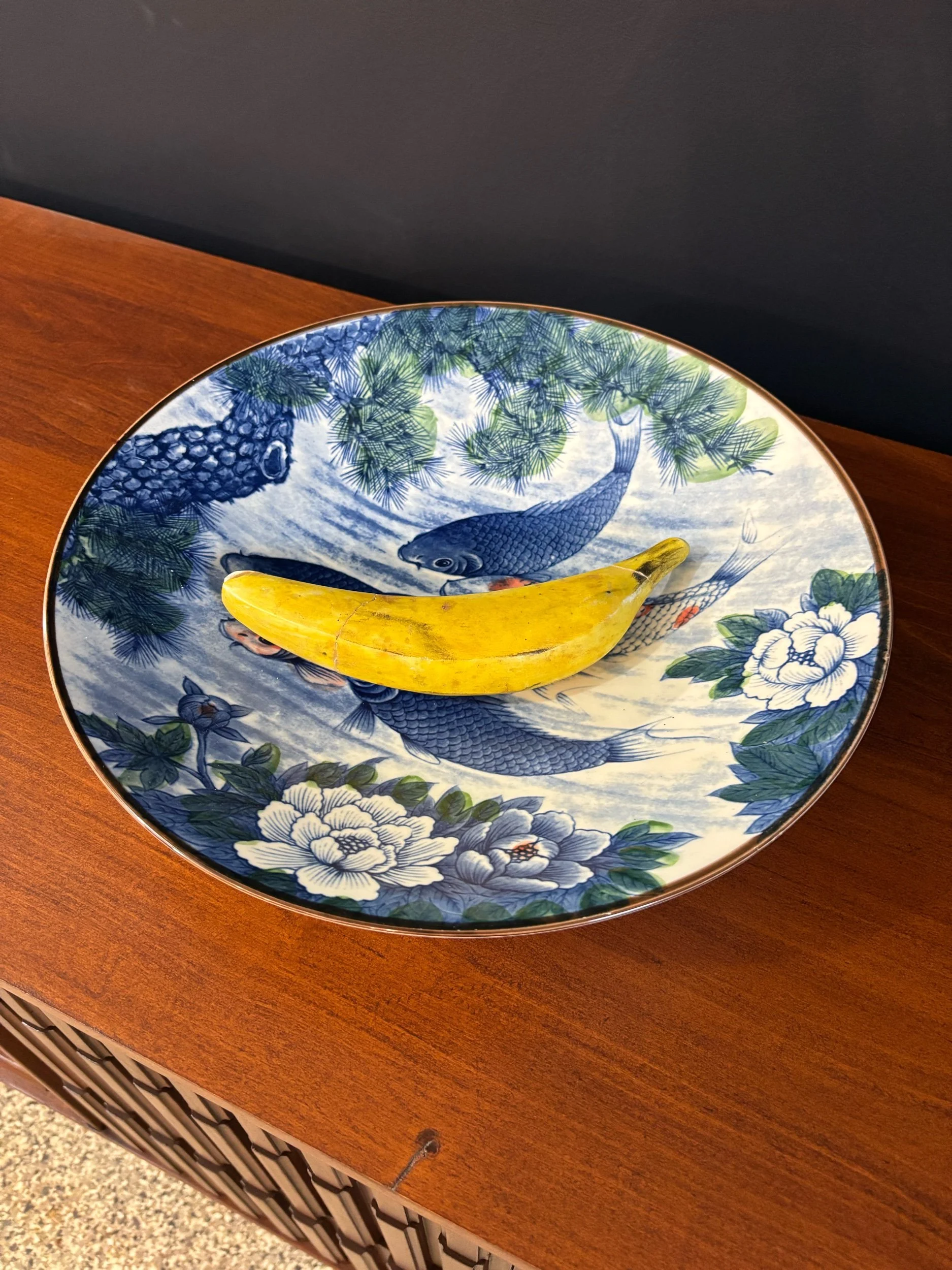 Vintage 1960’s Mid Century Modern Sun Ceramics koi fish large serving bowl. Made in Japan.